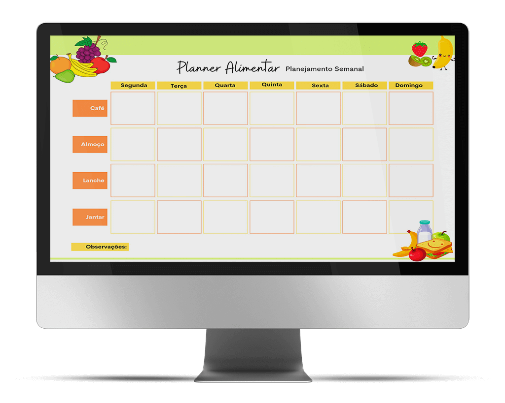 Diga adeus ao estresse de decidir o que preparar para o lanche todos os dias! Com o nosso Planner Alimentar Semanal, você terá uma ferramenta poderosa para planejar as refeições e lanches da sua família de forma prática e eficiente.